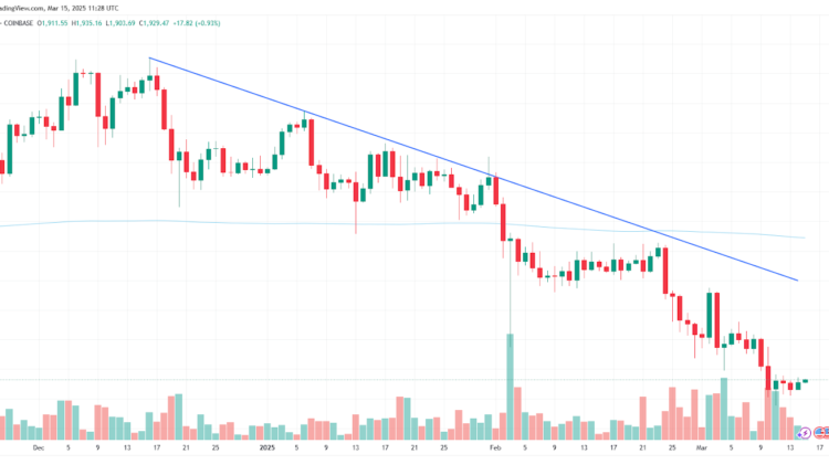 Ether (ETH) price fell over 52% during its three-month downtrend after it peaked above $4,100 on Dec. 16, 2024, TradingView data shows.