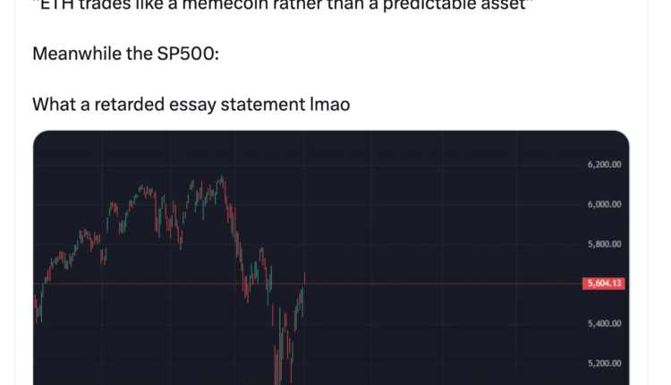 “What a retarded essay statement,” one market observer wrote on X, citing the high volatility of the S&P 500, which dropped 4.7% YTD.