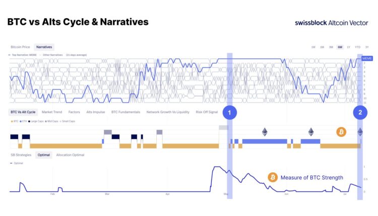 Data analytics platform Swissblock noted that the current scenario for Ether against Bitcoin is much more bullish than Q2, potentially signaling the start of an altseason. The analysis points to ETH inflows gaining momentum and its ecosystem narratives strengthening, contrasting with Bitcoin (BTC) fading strength and consolidation. The chart illustrates ETH’s relative outperformance, echoing an early May flip that sparked the first altcoin recovery since its price bottom on April 7.