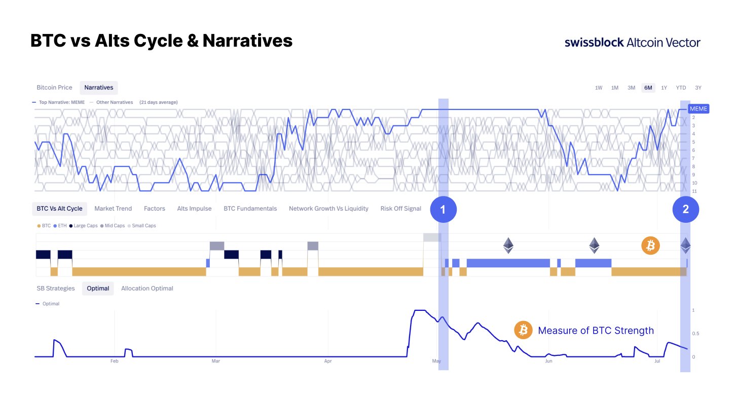 Swissblock emphasized a critical 72-hour window, suggesting that if ETH holds strong, it could mark the true onset of altseason. This shift aligns with BTC’s declining dominance, a historical sign of altcoin surges.