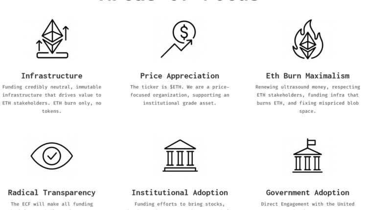 The ECF says it will provide grants to projects that increase “ETH burn, contribute to the public goods, advance core infrastructure, and scale Ethereum.”
