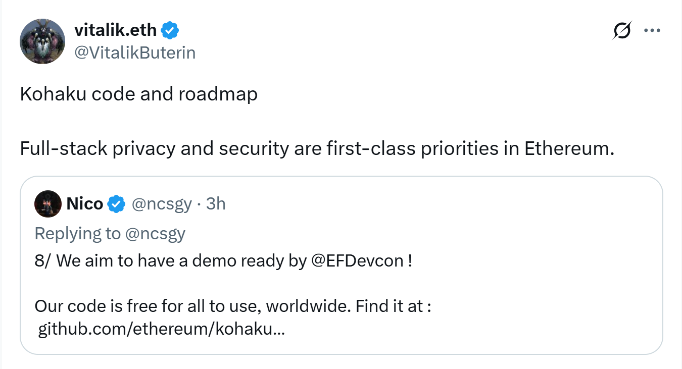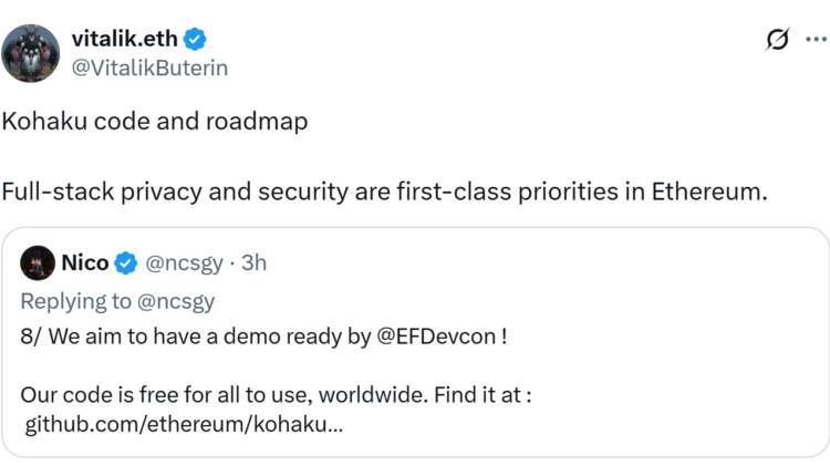 Kohaku is being developed in collaboration with well-known Ethereum ecosystem teams, including Ambire, Railgun, DeFi Wonderland, Helios and Oblivious Labs. The project is open source, and developers are encouraged to contribute through its GitHub repositories.