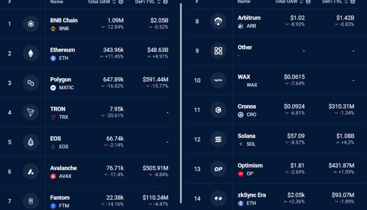 Assessing the Ethereum network’s health, Ethereum DApps achieved a total value locked (TVL) of $26 billion on Nov. 23, representing a 5% increase from the previous week, according to DappRadar. However, a hack significantly impacted dYdX, resulting in a 16% decline in the protocol’s deposits.