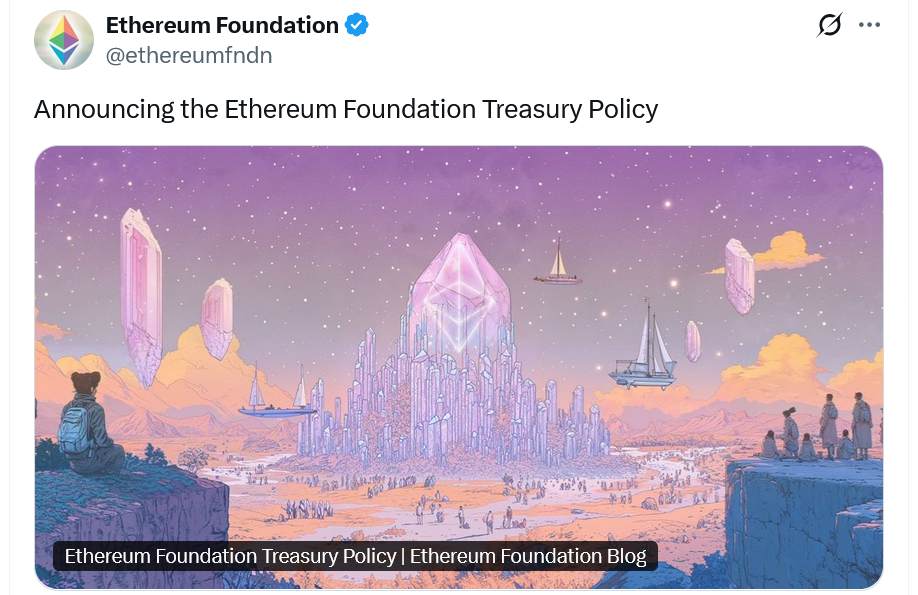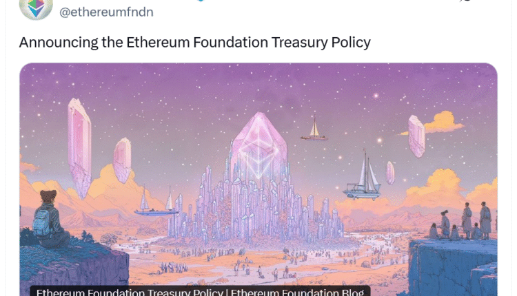 The Ethereum Foundation is adopting a more structured and transparent treasury policy that ties operational costs and cash needs to its Ether reserves and sales to strengthen its financial position as it anticipates a pivotal 18 months ahead.