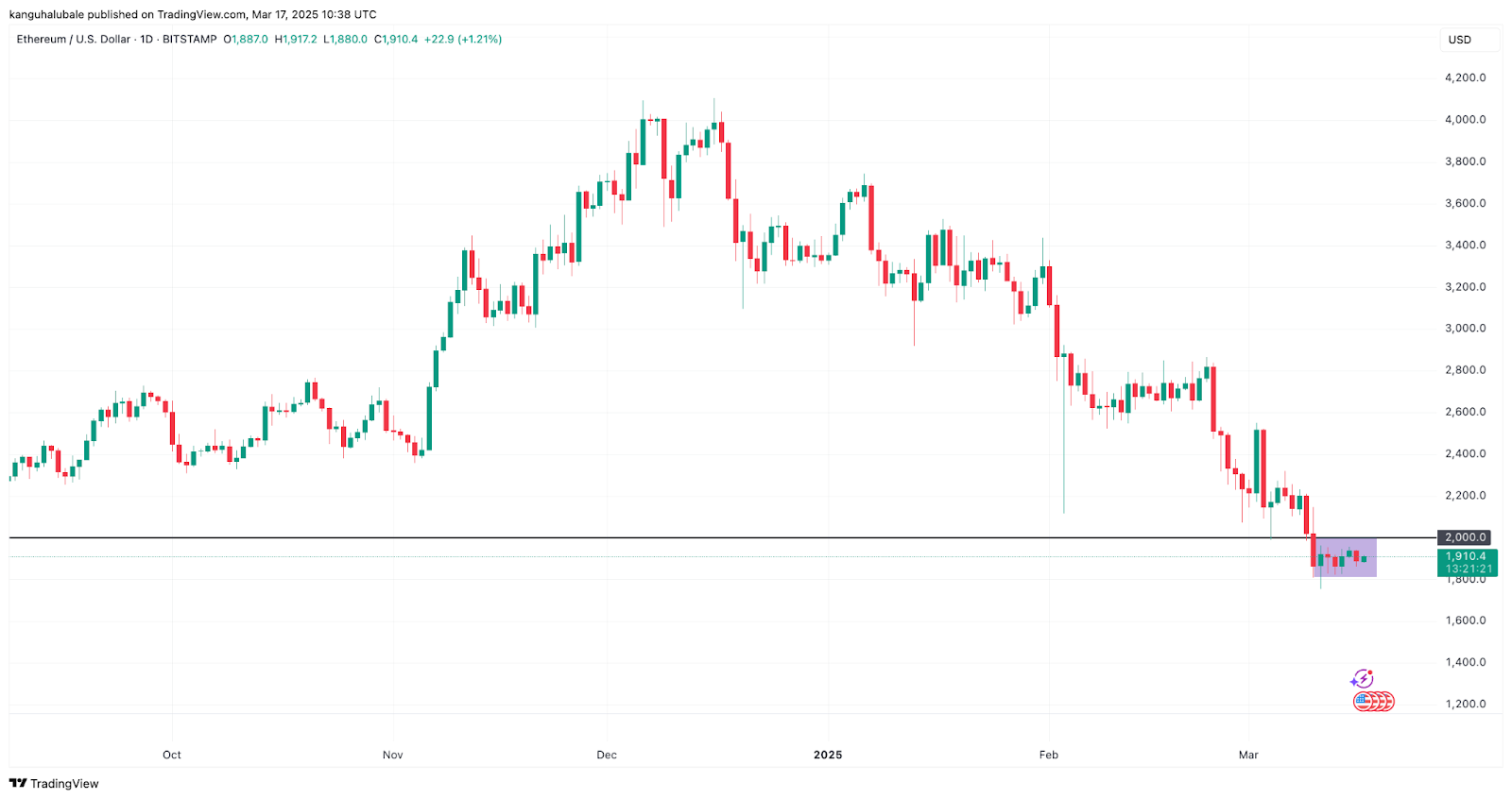 Data from Cointelegraph Markets Pro and Bitstamp shows that ETH price oscillates within a tight range between $1,810 and $1,960.