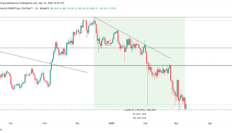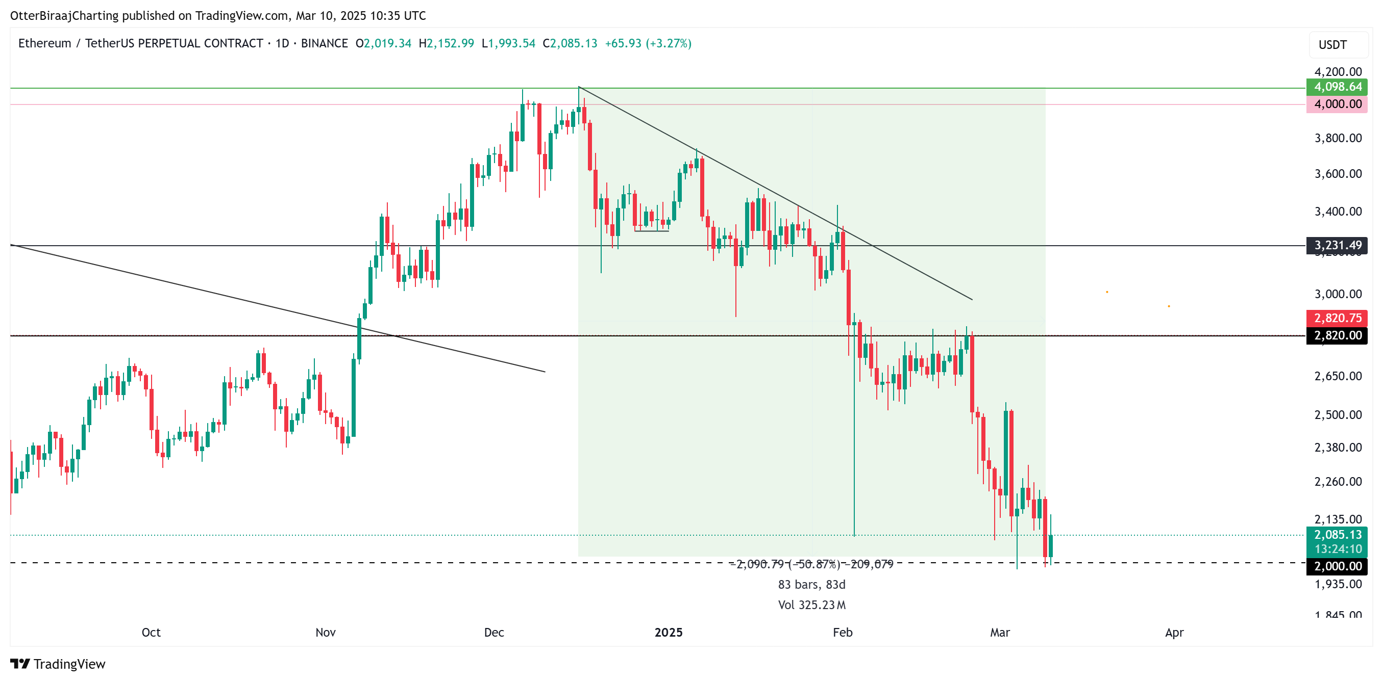 Ether price is currently consolidating near its psychological level at $2,000, following a steady correction since the beginning of 2025.