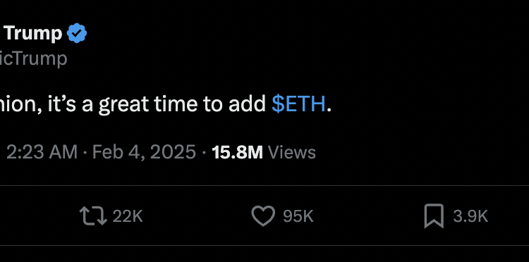 President Trump spoils son’s bullish ETH outlook