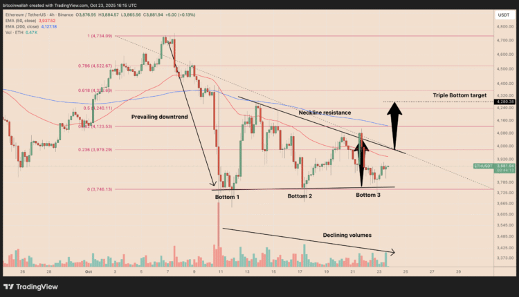 Ethereum Triple Bottom Setup Hints at $4K Breakout Next