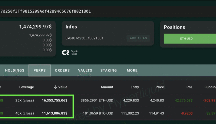 An Ethereum whale has opened a massive $16.35 million long position on Ether (ETH), using 25x leverage, in what looks like a bold wager that the latest dip is over.