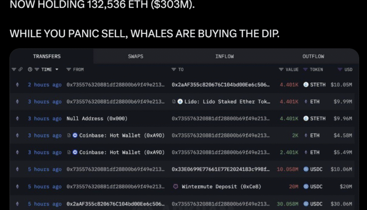 A high net worth Ethereum trader has accumulated tens of millions of dollars worth of Ether (ETH), defying a broader market downturn triggered by escalating Middle East tensions and fresh signs of risk aversion.