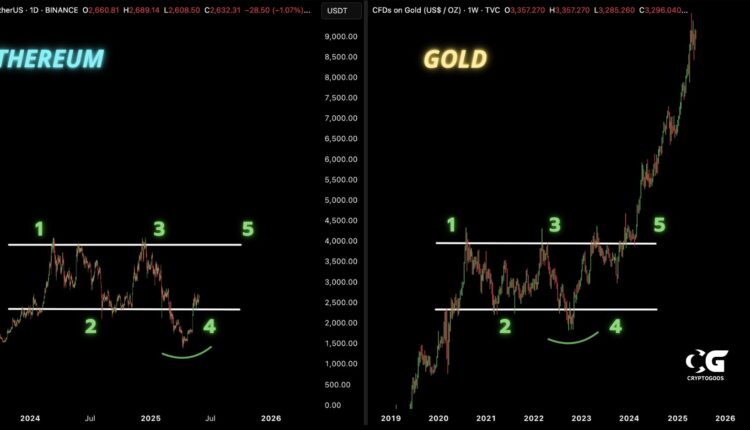 A multi-year gold fractal is making a strong case for an Ether (ETH) price rally toward $6,000 in the coming months.