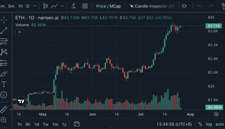 Ether is trading at $3,750 at the time of publication, up 51.84% over the past 30 days, according to Nansen. However, Santiment said it is also possible that the rally is not over just yet for Ether, as other indicators suggest the market hasn’t reached “peak frothiness.”