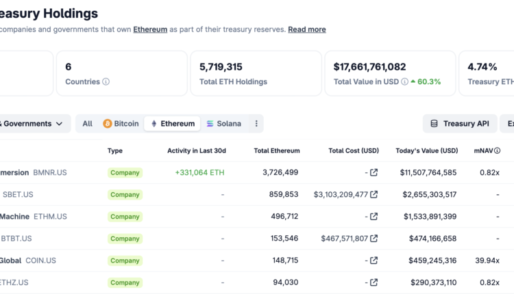 ETHzilla is currently the sixth-largest Ether treasury company, with 94,030 Ether (ETH) on its balance sheet, according to CoinGecko data.