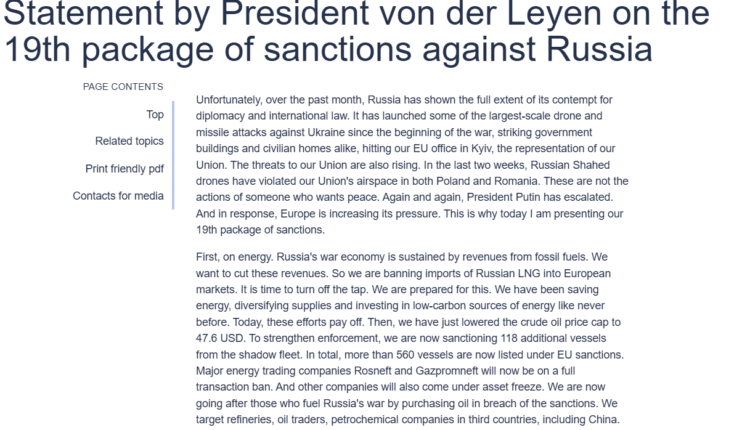 Von der Leyen said the measures respond to Russia’s “largest-scale drone and missile attacks against Ukraine,” which have also seen Shahed drones violate EU airspace in Poland and Romania.