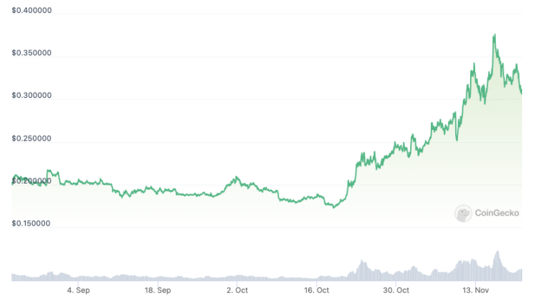 Despite the Fantom Foundation losing half a million to a hack one month ago, the Fantom token has risen over the past four weeks. The token has added 82% of value since Oct. 17, trading at $0.31 at the time of writing, according to CoinGecko. The token is also up 78% over the past year, according to the data.