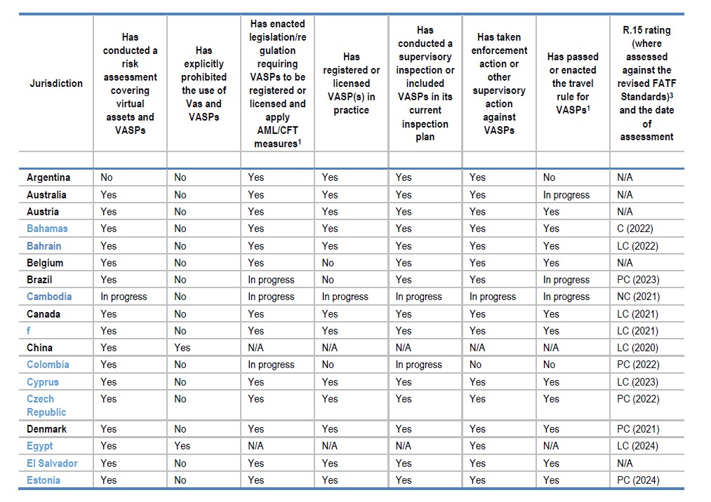 The Bahamas is the sole jurisdiction to achieve full R.15 compliance at the time of writing. Source: FATF