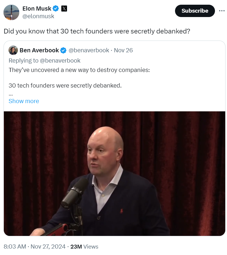 At least 30 tech and crypto founders were “secretly debanked” in the US during Operation Chokepoint 2.0, Cointelegraph reported in November 2024.
