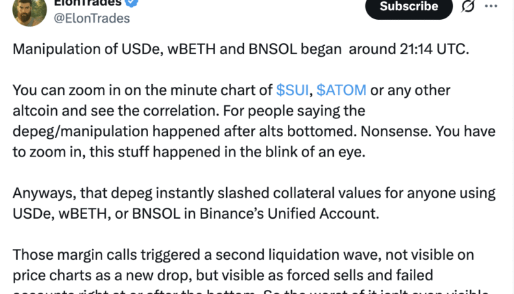 Binance was also linked to an exploit affecting Ethena’s USDe synthetic stablecoin, which temporarily lost its peg during the market chaos.
