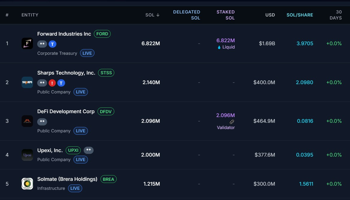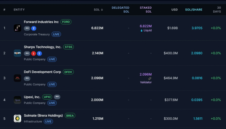 Forward Industries currently holds the largest Solana-based crypto treasury, valued at almost $1.7 billion. The company is backed by crypto giants Galaxy Digital, Jump Crypto and Multicoin Capital, and plans to be more involved in the network’s ecosystem.