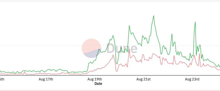However, its fees have since cratered. Daily fees peaked at $1.7 million on Aug. 21, but dropped over 87% to around $215,000 on Aug. 26 according to DefiLlama.