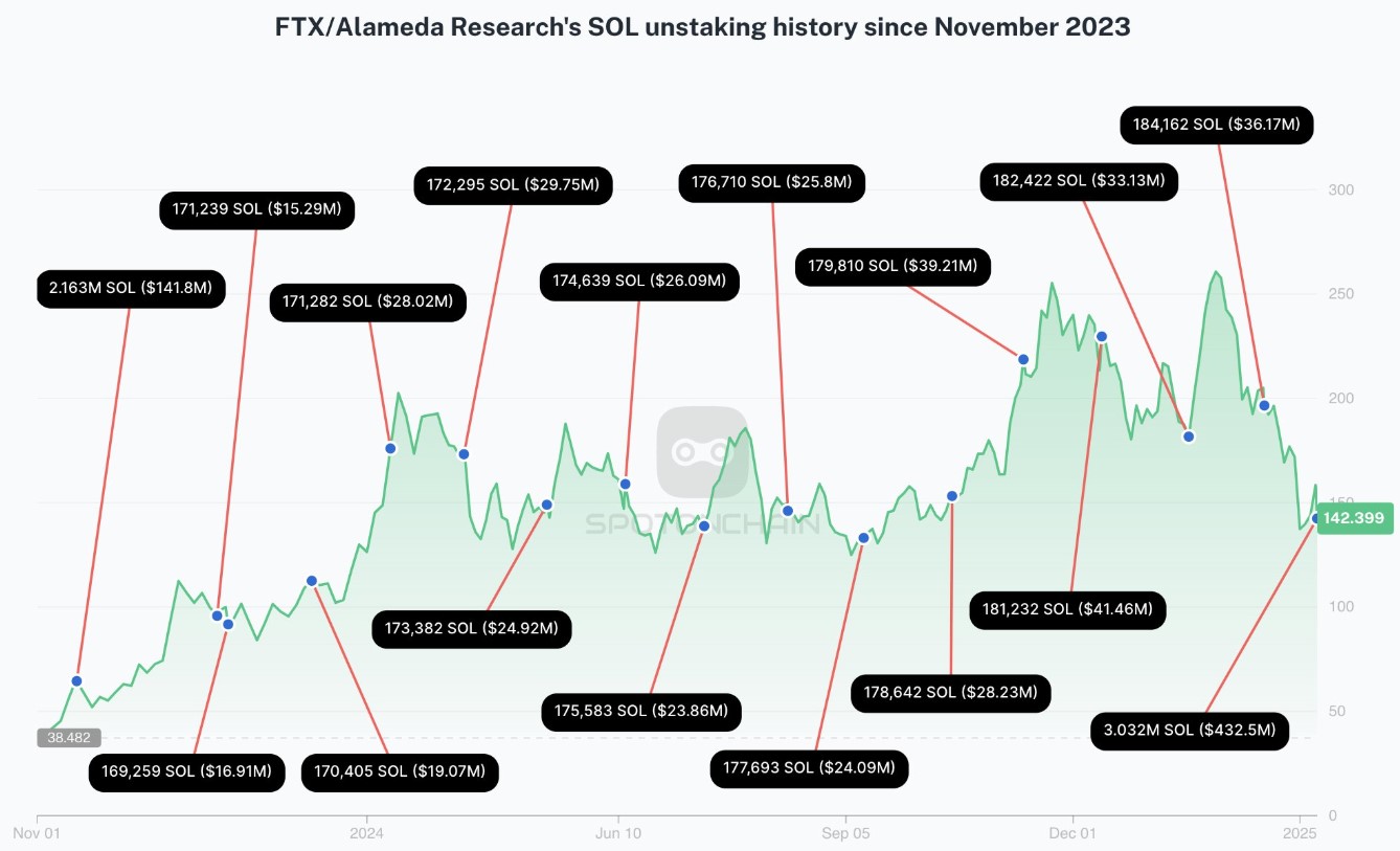 FTX and Alameda Research’s SOL unstaking history since November 2023. Source: Spot On Chain