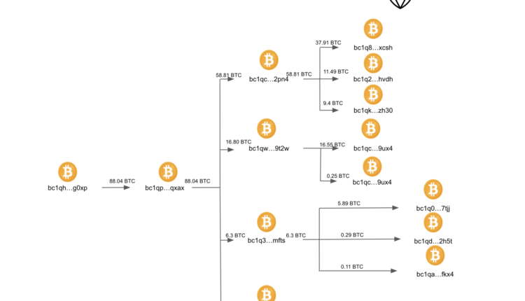 The funds stored in the original Bitcoin wallet are distributed through multiple wallets, transferring smaller divisions of funds to a series of additional wallets, a tactic that “considerably prolongs” the tracing process.