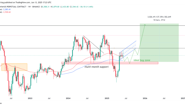 The $2,100-$2,200 is a multimonth range, which previously acted as support from the end of 2023 to August 2024.