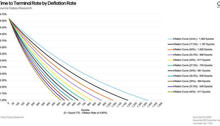 “Instead of cycling through inflation reduction proposals until one passes, what if validators could allocate their votes to one or many changes, with the aggregate of ‘yes’ outcomes becoming the adopted emissions curve?” Galaxy explained.
