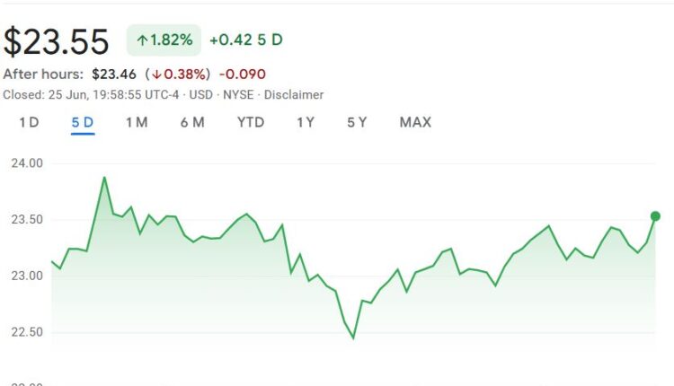 The stock price has recovered slightly and is up over 1.8% in the last five days, trading at $23.55 after the closing bell on Wednesday; however, it has also dropped 0.38% in after-hours trading.