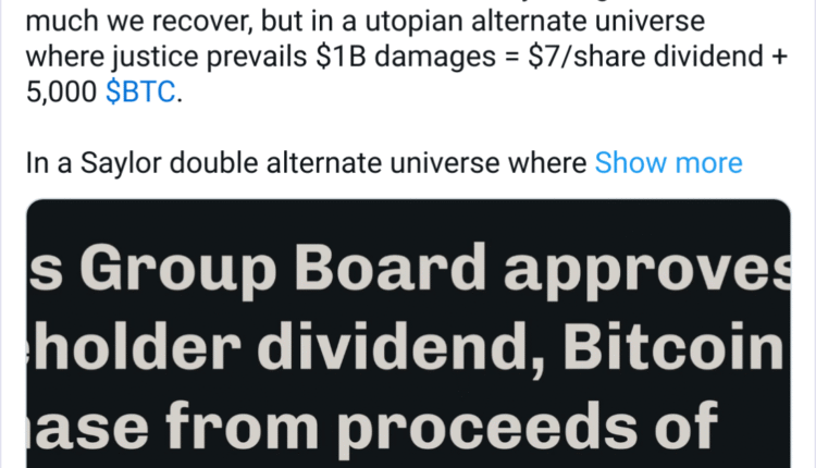 According to Hamilton, 50% of the winnings will be distributed among shareholders as a special dividend, while the other half will be redirected to the company’s Bitcoin (BTC) treasury.