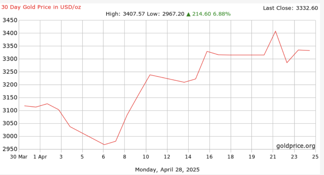 Since US President Trump’s renewed trade war, gold has increased significantly in value. On April 2, Trump’s “Liberation Day,” when the tariffs were announced, the price of one ounce of gold was $3,115. At the time of this writing, on April 28, the ounce price is at $3,335, representing a 7% jump in less than 30 days.
