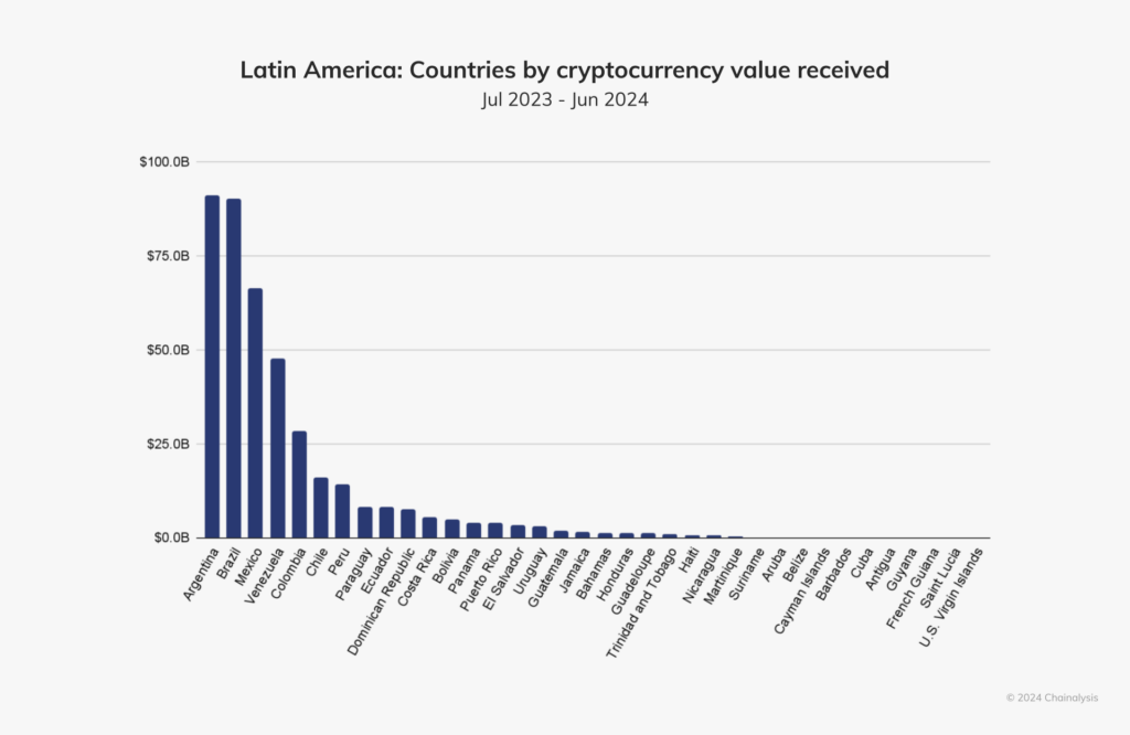 Crypto adoption in Latin America by total value received. Source: Chainalysis