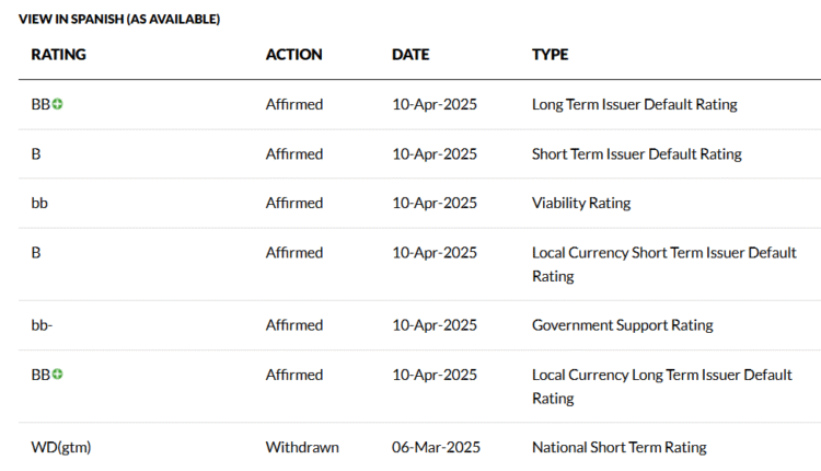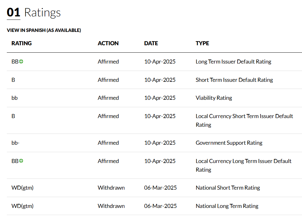 Banco Industrial has a long-term issuer default rating of BB. Source: Fitch Ratings
