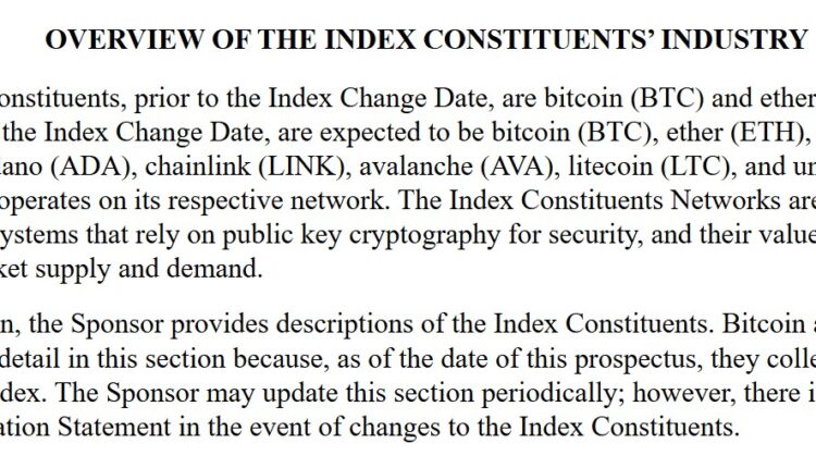 According to the filing, the proposed altcoins additions “are decentralized peer-to-peer computer systems that rely on public key cryptography for security, and their values are primarily influenced by market supply and demand.”