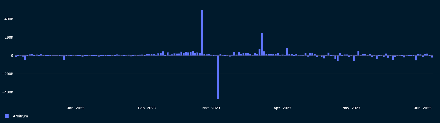 Despite this, the Arbitrum network was able to retain a significant share of bridging volume from Ethereum. Data showed that the gross volume of Ethereum bridging to Arbitrum has stayed strong after the airdrop, with Arbitrum keeping the second-largest spot just after Polygon.