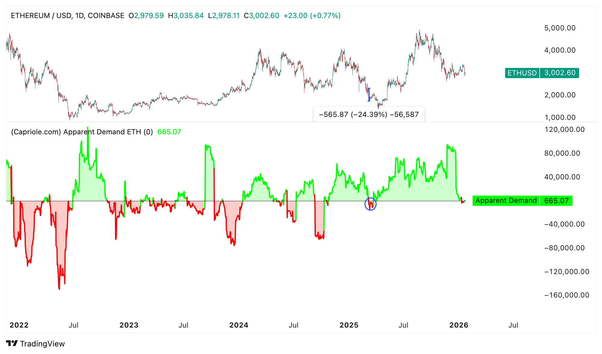 One Ethereum demand metric has dropped sharply since mid-December to levels last seen in March 2025.