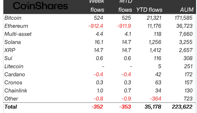 Ether (ETH) posted outflows of $912 million, suggesting a possible rotation of funds from the largest altcoin into other cryptocurrencies, including XRP.