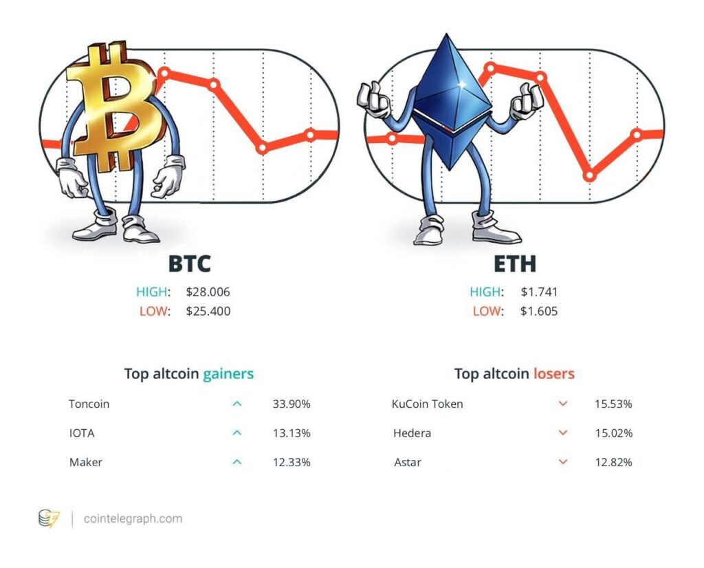 Reversing the gains witnessed the previous week, BTC/USD is now trading below $26,000 as of Sept. 1, according to data from Cointelegraph Markets Pro and TradingView.