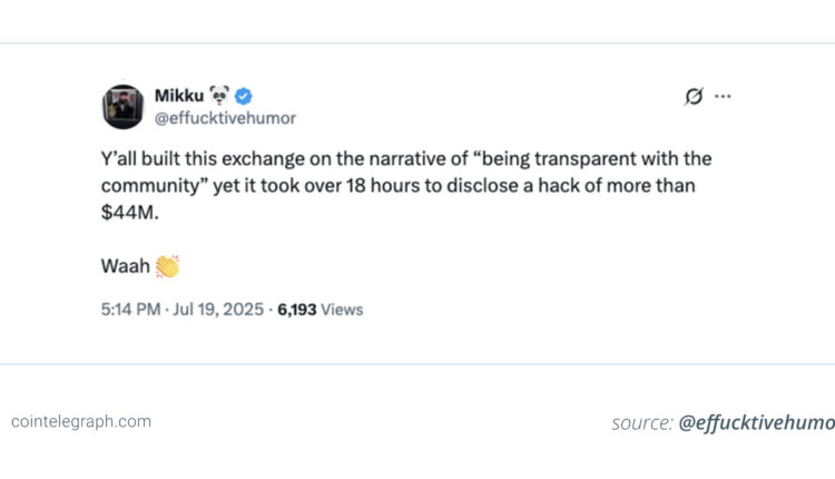 Many in the crypto community were frustrated at CoinDCX’s slow reporting, especially as the organization claims to keep a strong public stance on transparency. Community comments include, “Y’all built this exchange on the narrative of ‘being transparent with the community,’ yet it took over 18 hours to disclose the hack of more than $44 million.”