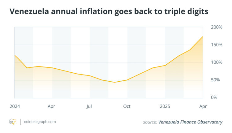 With annual inflation around 229% as of May 2025, everyday prices track three references: the central bank of Venezuela’s (BCV) exchange rate, the parallel “dólar negro” and a Tether USDt (USDT) peer-to-peer (P2P) rate many merchants actually use.
