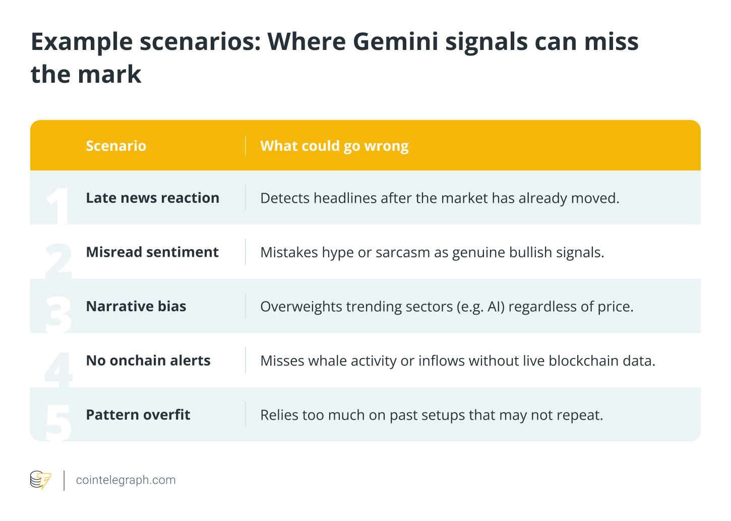 Even advanced models have blind spots. Here are five ways Gemini can misfire in crypto trading:
