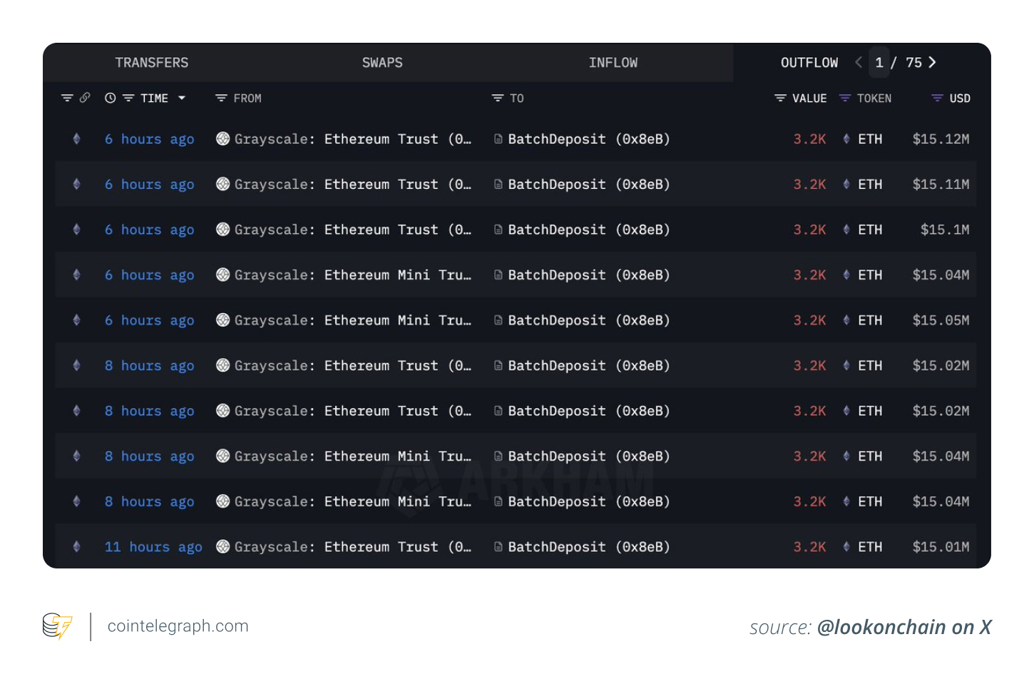 Grayscale staked 32,000 ETH (about $150 million) a day after it enabled staking for its Ether ETPs, making it the first US crypto fund issuer to offer staking-based passive income via US-listed spot products.