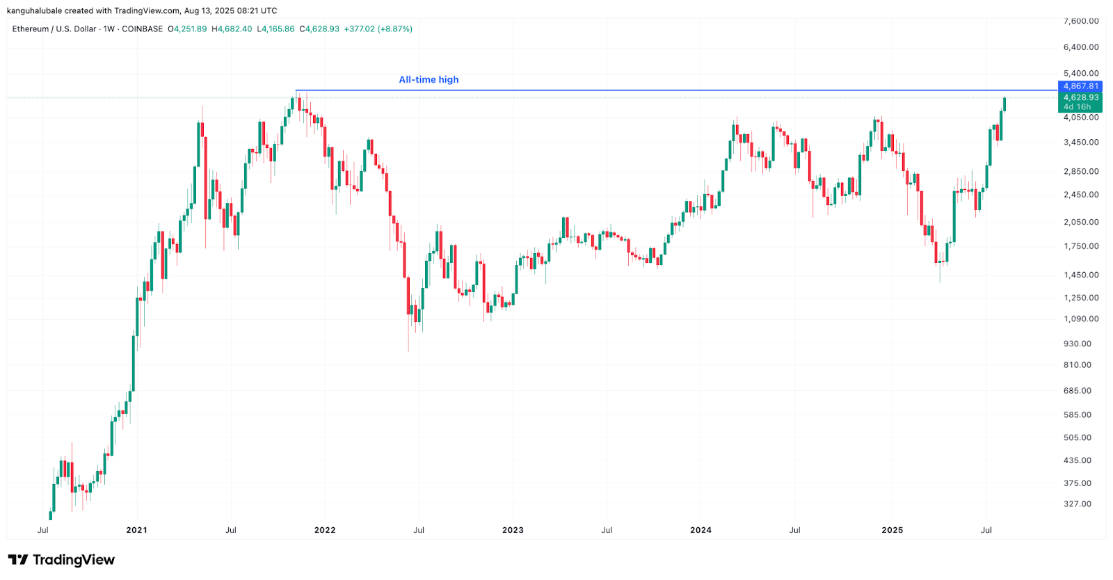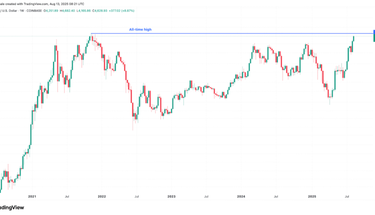 The ETH/USD pair reached an intraday high of $4,715 on Wednesday, just below the all-the $4,867 all-time high reached in November 2021 (on Coinbase), data from Cointelegraph Markets Pro and TradingView shows.