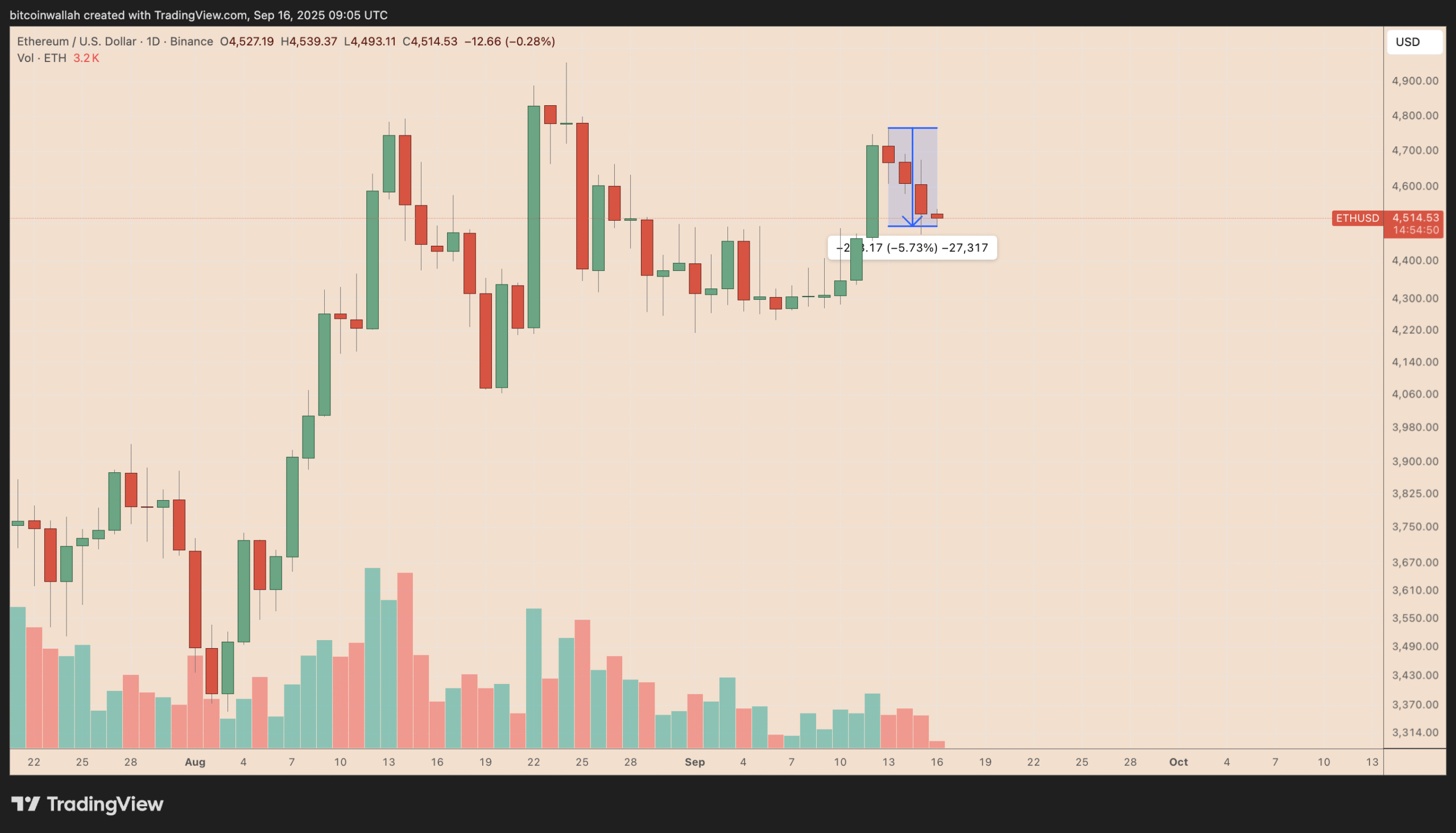 The pullback reflects caution in the market, but the bigger question is whether the Fed’s potential dovish shift could reignite Ethereum’s rally and how far the next move might extend.