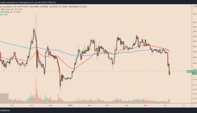 The market capitalization of BNB (BNB) has dropped by more than $7 billion since June 5, when the United States Securities and Exchange Commission (SEC) filed a lawsuit against Binance.