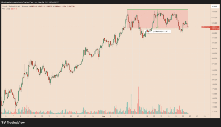 Zcash (ZEC) has dropped about 30% from its November peak of $750, raising fears of deeper losses ahead, with some analysts warning of a potential “pump-and-dump.”