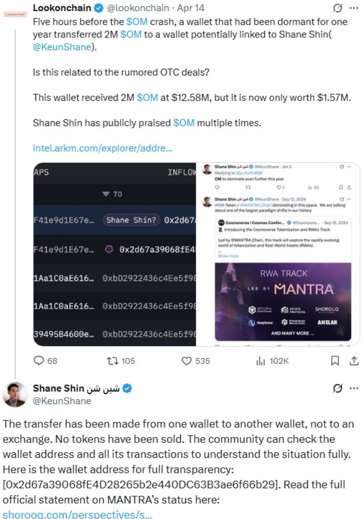 Lookonchain also identified another wallet using Arkham data that had remained dormant for a year before becoming active just hours before the crash. The wallet was labeled as belonging to Shane Shin, a founding partner of Shorooq Partners, and received 2 million OM shortly before the collapse.