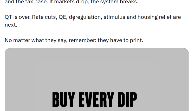 “Buy every dip.” That’s the advice from Strike CEO Jack Mallers. According to Mallers, with quantitative tightening over, and rate cuts and stimulus on the horizon, the great print is coming. The US can’t afford falling asset prices, he argues, which translates into a giant wall of liquidity ready to muscle in and prop prices up.