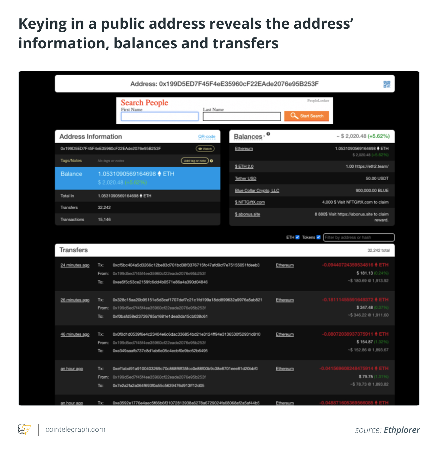 On Etherscan, for example, the search field is on the top, left-hand corner of the screen next to a dropdown that says “All Filters.” Depending on the tool, a user can search for information based on a wallet address, transaction hash (txid), block, token or domain name.