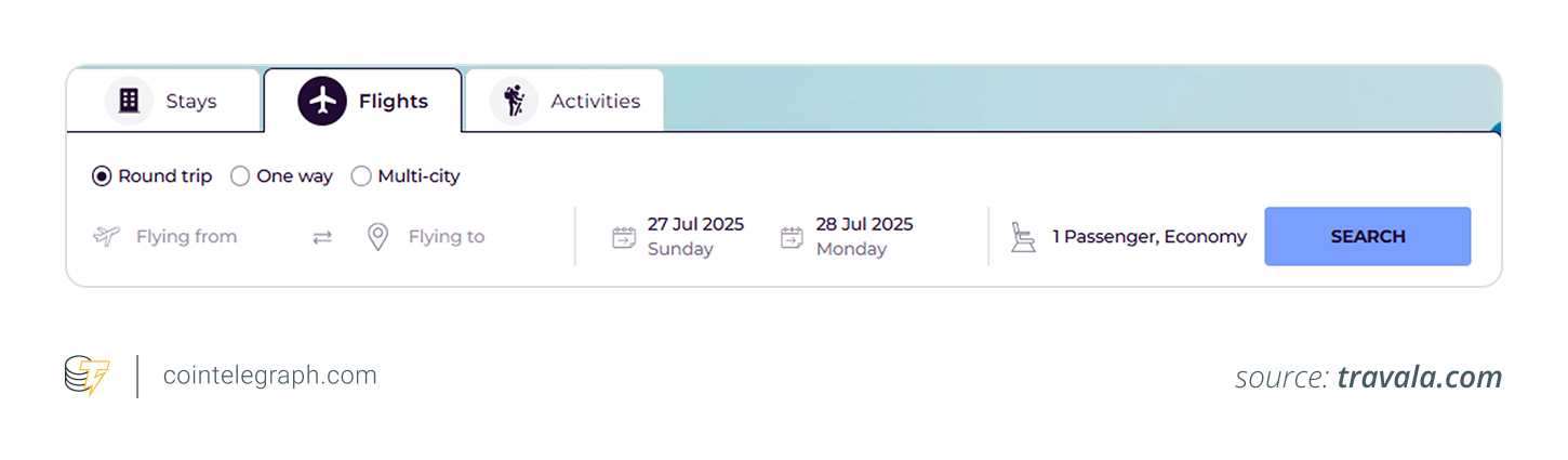 Travelers can pay with Bitcoin, Ether, stablecoins and other digital assets via checkout or gift cards, depending on the platform.